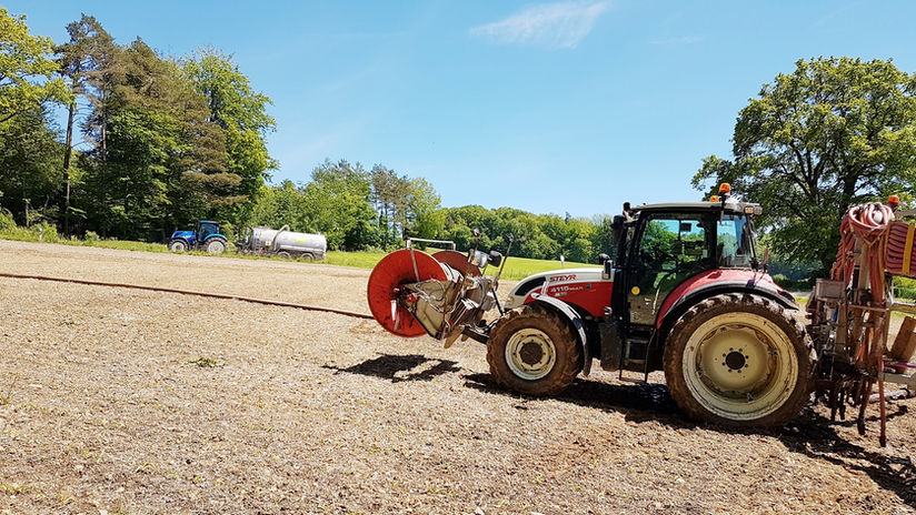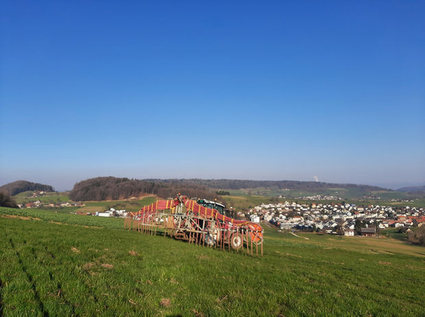 Mit dem Verschlauchen haben wir die Möglicheit, zu fast jeder Jahreszeit die Gülle auszubringen - auch bei extremen Bodenverhältnissen, wenn man mit einem Güllefass schon lange nicht mehr oder noch nicht aufs Feld fahren kann. Dadurch schonen wir Ihre Böden.